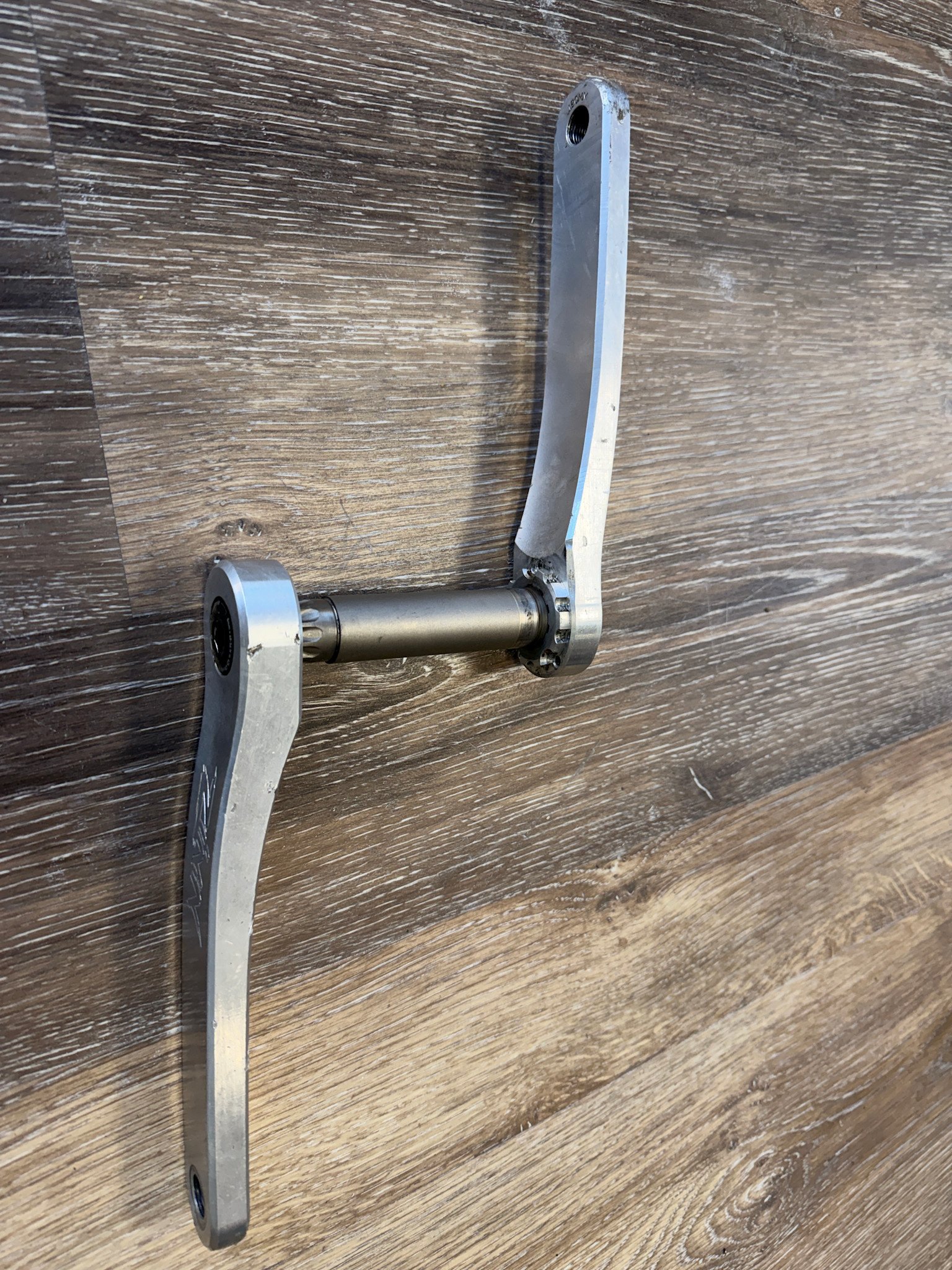 We have a nice set of ZIS pro Mountain bike cranks available in a 190mm length. These are used and have seen some trail action. There are normal scuffs and scratches on the arms from riding. Spindle is in perfect shape.