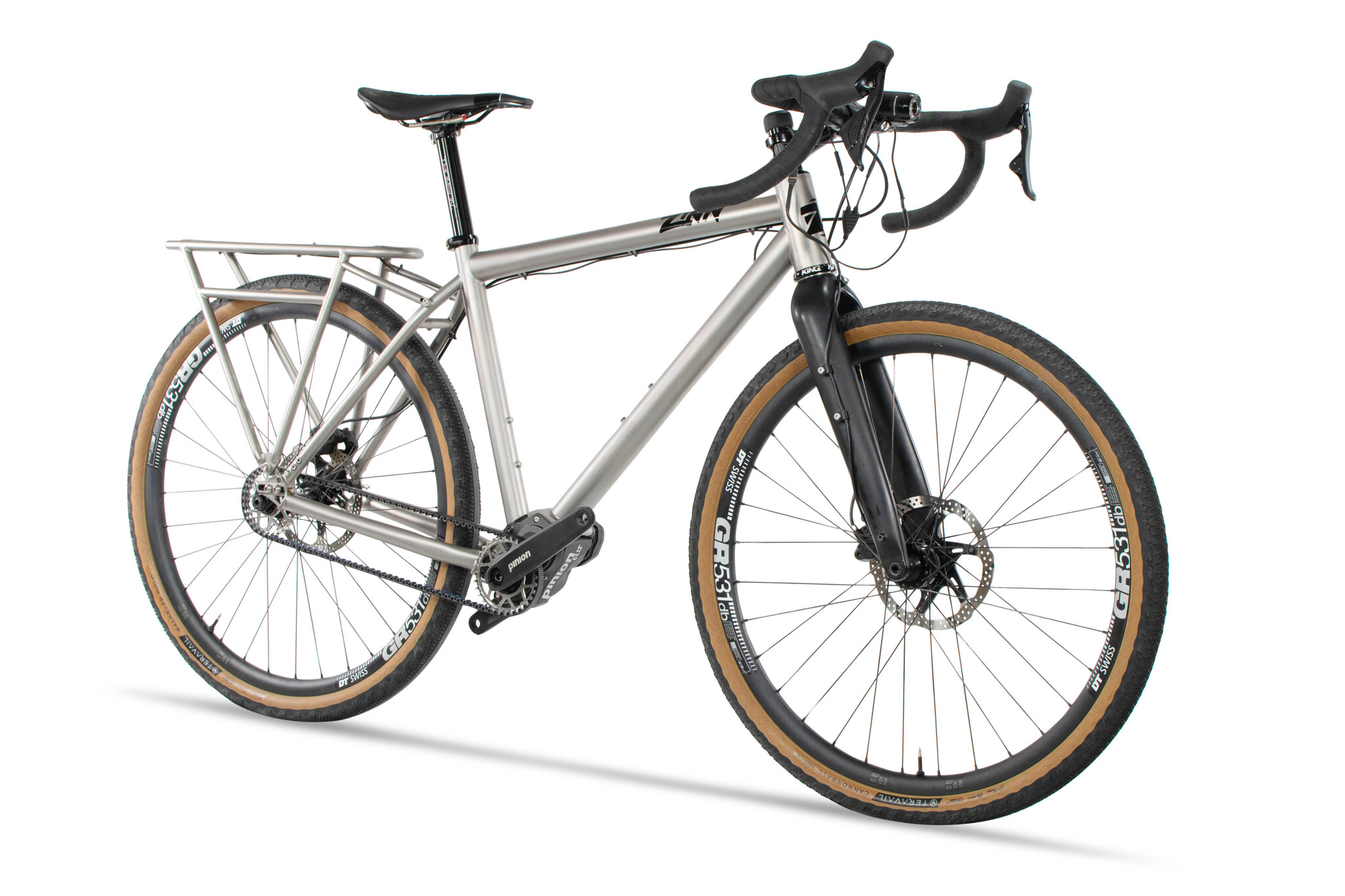 This custom touring bike is a true gem, and if it fits you, you should not hesitate. It is a work of art and performance. Our framebuilder, Nalby, built this bike for his cross-country trip across Turkey, where he spent a month traveling on this very bike through the historical country side and cities of Turkey. This is truly the ultimate touring bike. A titanium bike built for load with a Pinion gearbox and Gates belt drive. Featuring Drop bars with TRP electronic shifters and a custom made one-of-a-kind titanium rear rack and the Zinn Duro Fork. Nalby really thought this bike out when he built it. He wanted a maintenance free bike with reliable shifting and drop bars. This led him to the Pinion gearbox with a gates belt drive. With the TRP drop bar brifters, this bike shifts effortlessly with electronic shifting. The bike has a dynamo front hub to charge the lights and the shifters, and even features a USB-C device charger on the top of the steering tube. He kept the majority of the wires and cables external to allow easy access and repairs while traveling in remote areas. The dynamo cable is routed externally along the Zinn Duro fork so he could get at the cable easily if he needed to. The only cables that run inside the frame are the ones going to the pinion. He routed the brake hose externally in case a repair or parts replacement was needed. He made a titanium rack for the bike, and he told me when he sent a picture of it, "Don't ask me to make another one of these". The rack is a work of craftsmanship unlike anything I've seen. It's sleek and beautiful and incredibly strong. If you get this bike, you'll know that it's truly one of a kind since he is refusing to make any more of these racks. :) We can, however, custom make you a new bike just like this one in any size and with custom geometry for you.  |
